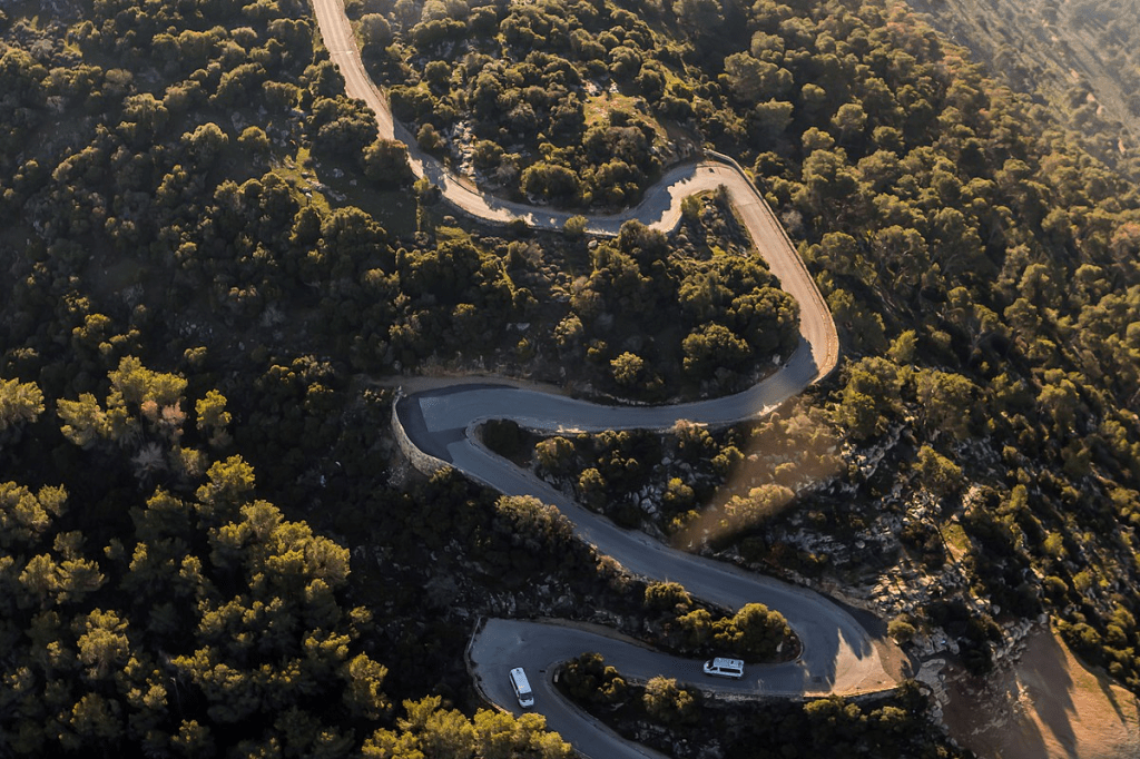 The only way to get to the top is to drive upon a very windy road. The drive itself is through a beautiful Mediterranean forest filled with Mount Tabor Oaks (the actual name of this species of trees), Pistachio trees, common oaks, and Carob trees. Depending on the season, you will see beautiful wildflowers on your way up, some of them quite rare!