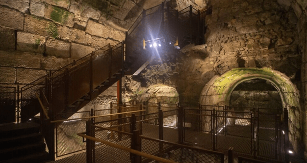 Although grand, the great banquet hall did not exist for long. In 70 CE, the Romans destroyed Jerusalem (including this massive building) and built new structures over it. Ironically, this is why the building itself has been so well preserved! Had the Romans simply left it alone, the building would have fallen into decay due to weathering and the removal of its stones for new building projects. In the 1300s, the Muslims built arches above these new, post-Temple Roman Structures (which then became underground cities themselves which can also be visited today). On top of them are the streets and buildings which today comprise the Muslim Quarter.