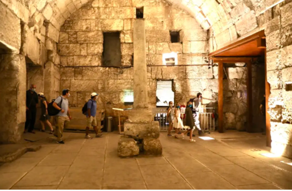 Although grand, the great banquet hall did not exist for long. In 70 CE, the Romans destroyed Jerusalem (including this massive building) and built new structures over it. Ironically, this is why the building itself has been so well preserved! Had the Romans simply left it alone, the building would have fallen into decay due to weathering and the removal of its stones for new building projects. In the 1300s, the Muslims built arches above these new, post-Temple Roman Structures (which then became underground cities themselves which can also be visited today). On top of them are the streets and buildings which today comprise the Muslim Quarter.