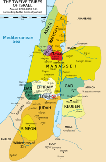 Photo Credit: “File:12 Tribes of Israel Map.svg” by 12 tribus de Israel.svg: Translated by Kordas 12 staemme israels heb.svg: by user:יוסי 12 staemme israels.png: by user:Janz derivative work Richardprins (talk) is licensed under CC BY-SA 3.0