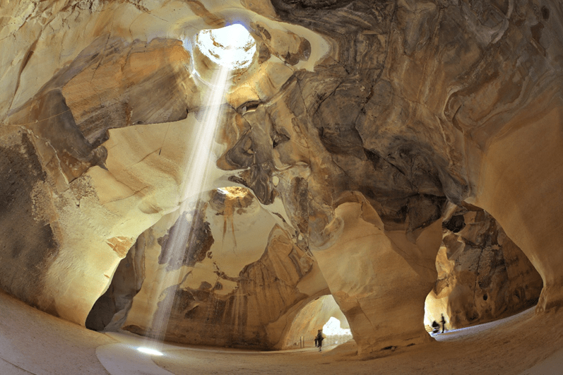 So far hundreds of these underground complexes have been discovered, although it is believed that this amounts to only 10% of the caves that existed here (and are still waiting to be discovered). As a side point, centuries later (circa 132-135 BCE) these caves were used by Jewish rebels, led by Bar Kochva, who connected them via subterranean crawling tunnels in a complex maze system (the Romans had no idea that the enemies they were fighting were located just beneath their feet). Using these tunnels enabled them to expel the mighty Roman Empire (albeit for a short time) from Israel by attacking them from below. Tourists today can crawl in nearby Bar Kochva tunnels (for more on the Bar Kochva tunnels, click here. To see a sample tour itinerary which includes these fabulous caves, click here).