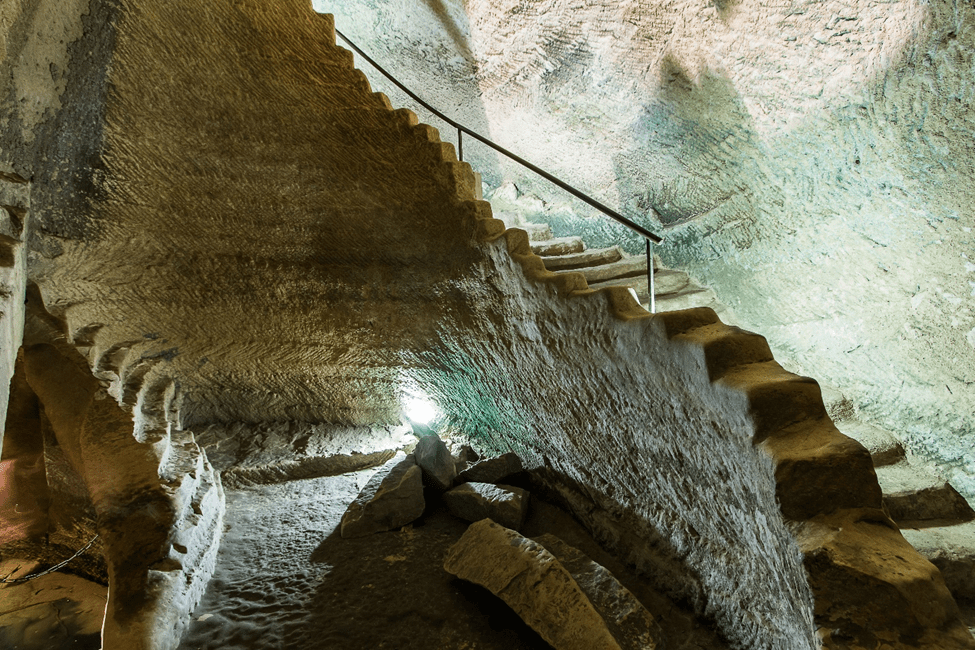 In addition to being centrally located, sitting on the crossroads of major ancient international highways, the natural soil and bedrock (chalk) of the area made this an ideal place to settle, both because it was conducive to large scale agriculture and the fact that the rocks created a superior building material! Once their homes were built, an interesting phenomenon (with major implications) occurred due to its unique geology. While chalk is a soft and easy material to quarry, diggers have to go down a minimum of 1.5-3 meters below the surface to get to it. This is because on top of this soft stone sits a hardened chalk called Nari, formed when the chalk on the surface gets rained upon (over the centuries). Later the sun dries it up, making it even harder. This tough stone makes such a great and strong roof, that when the soft stone below is quarried, a sturdy cave “basement” now exists, and they were converted into workshops, industrial centers, water cisterns and more.