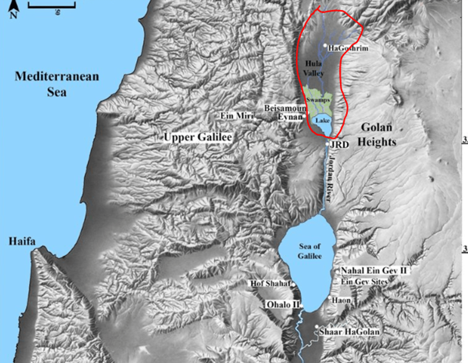 The Hula Lake (the Biblical Waters of Merom) sits in the Hula Valley (sandwiched between the Upper Galilee and the northern Golan Heights) north of the Sea of Galilee. The lake was almost completely drained in the 1950s, although in the 1990s a percentage of it was redrained (more on that shortly). According to Jewish sources, it is one of the 7 seas that encompass Israel. The Hula Valley itself sat on the junction of a major international trade route which went from Egypt to Damascus, and was home to the ultra-powerful Canaanite city of Hazor (for more on that fascinating site, click here).