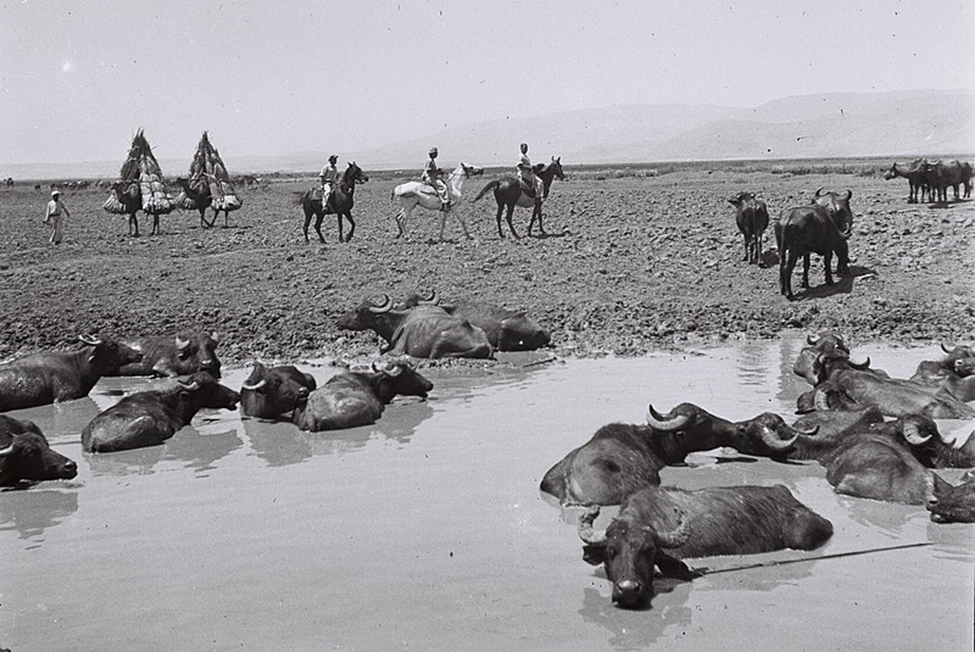 For the next several millenia, the Hula Valley continued to be inhabited by rural settlements where agriculture flourished. By the late 19th century, when the Jews started returning en masse to Israel, the land was filled leopards, bears, hyenas, jackals, gazelles, wolves, and other animals (for more on Israel’s past animals, click here. For more on animals currently living in Israel, click here). It is estimated that 5000 water buffalos lived by the lake (and are believed to have been introduced here in the 8th century for their milk, and work as beasts of burden).